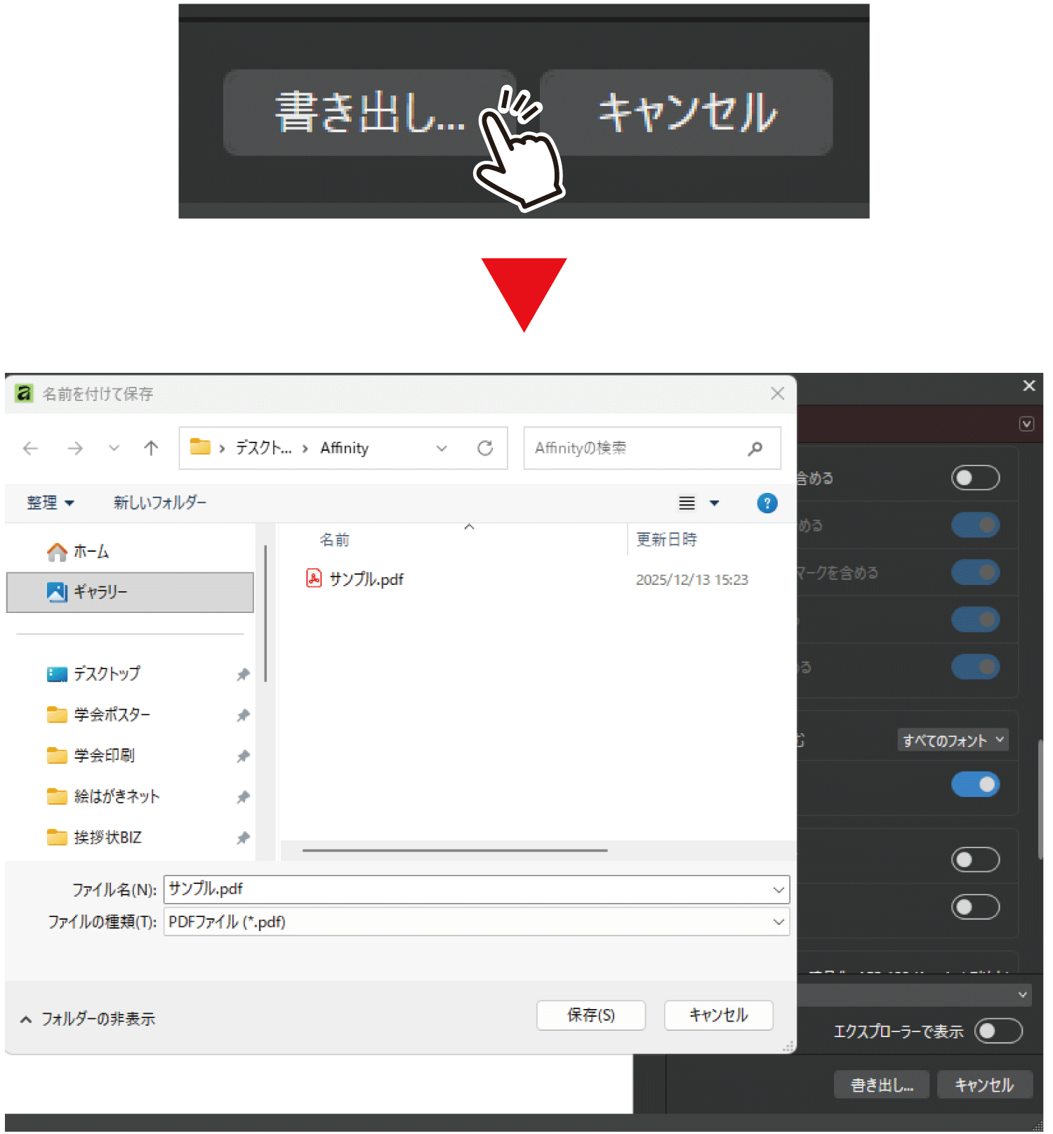 Affinityで作成したデータは、PDF(印刷)形式で保存してください。