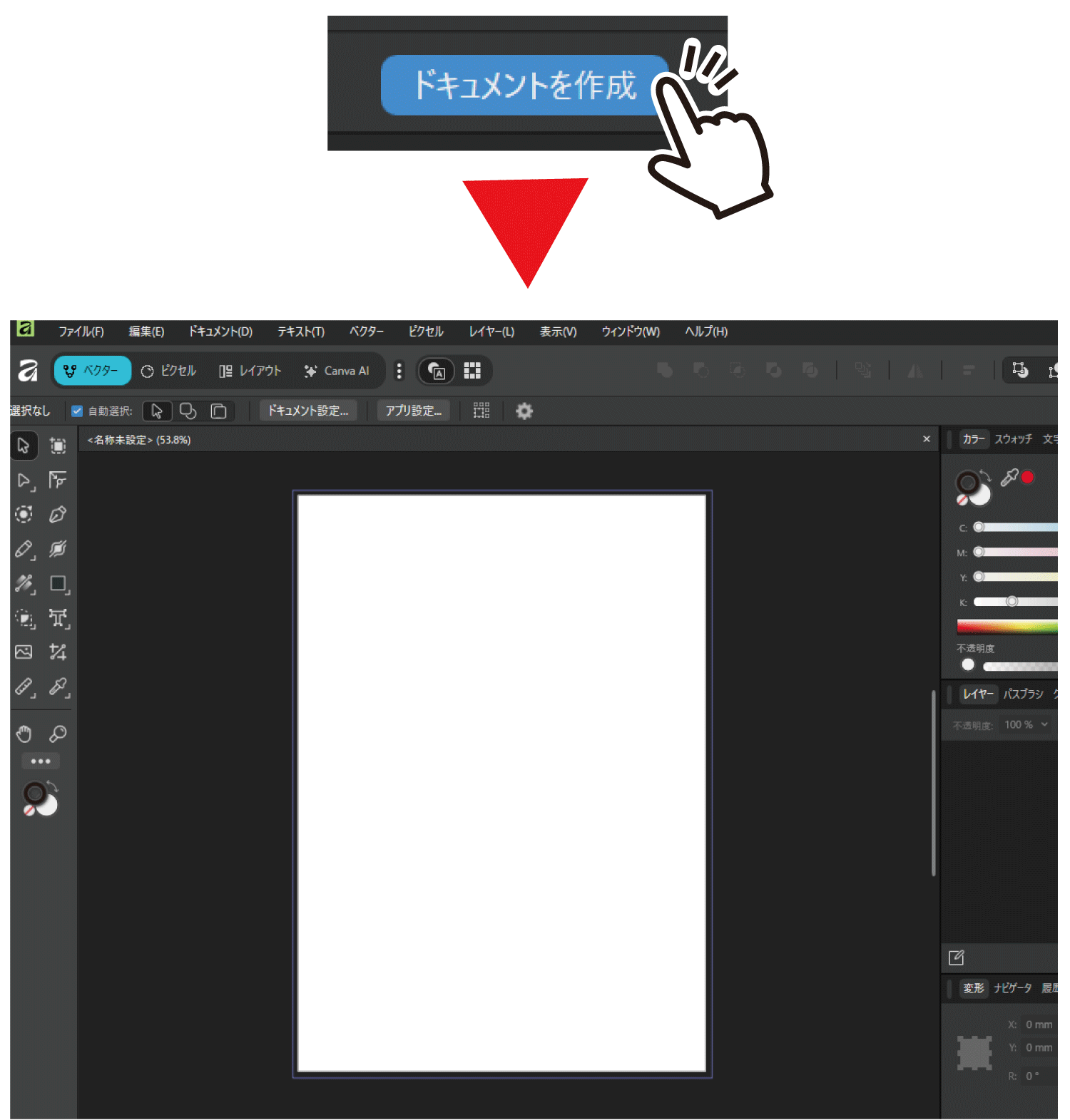 以下にAffinityのドキュメント設定方法およびPDFの保存方法をご紹介していますので、データ作成前に必ずご確認ください。