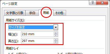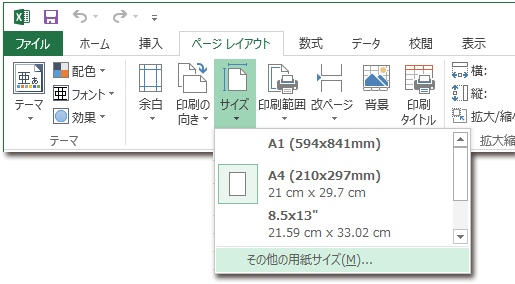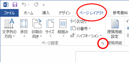 [ページレイアウト] から右下の拡大マークをクリックしダイアログを開く