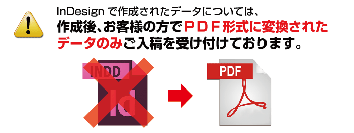 InDesign は互換性の問題により、そのままご入稿いただくと対応できないことがあります。 |