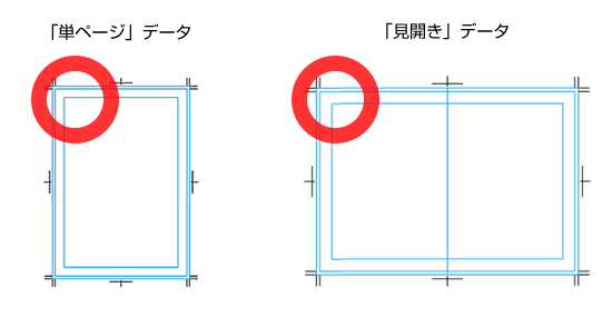 | 表紙などの見開きデータの作成時は、特にページ配置にご注意ください。 |