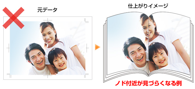 ※ノド(綴じ)部分を避けてレイアウトするのがオススメです。