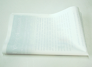 | 合成紙 | 一般の用紙よりも耐水性・耐久性に優れた印刷用紙。 ディスプレイ用ポスター向けのポリプロピレン系フィルムを使用し、経済性にも優れます。 引っ張り、折り曲げ、その他の衝撃等に対する破れにくさは一般のレベルを遥かに超えており、一般紙より耐久性(破れにくさ)に優れています。 さらに表面がとても滑らかです。 |