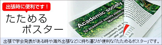 持ち運びに便利な、折りたためる布地のポスター。 通常用紙と違い、折りたたんでもシワになりにくく、折り目も付きにくいのが特長です。 通常用紙よりも耐久性に優れていますので、何回でも使用することが出来ます。 布地なので光沢性はありませんが、通常紙と比較しても遜色ない、鮮やかな発色です。 海外での学会発表が多いお客様には最適です。
